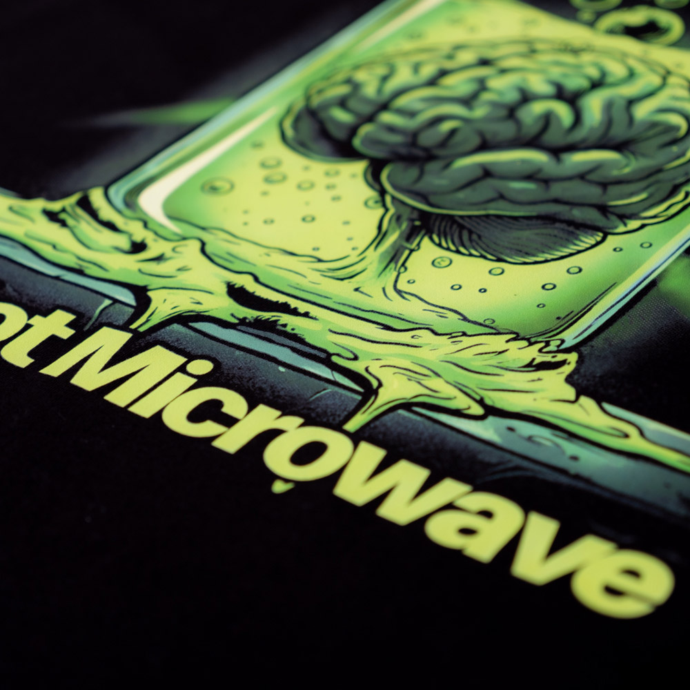 Keep your brain from melting — literally. The Do Not Microwave tee brings dark humor and bold style together in one eye-catching design. Featuring a glowing green brain floating inside a jar of neon liquid, this graphic stands out on a jet-black premium cotton shirt. • 100% soft cotton • Vibrant high-definition print • Unisex fit for everyday comfort • Designed & printed by The Tee Market